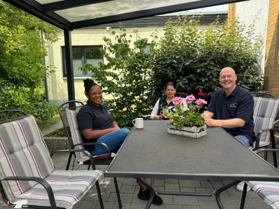 Austausch – Ein offenes Ohr tut besonders nach einer Tour gut. Gerne kommen die Kolleg:Innen nach einer Tour in die Verwaltung, um über die Tour oder auch Privates zu reden. Gerne wird hier auch unsere einladende Terrasse genutzt.